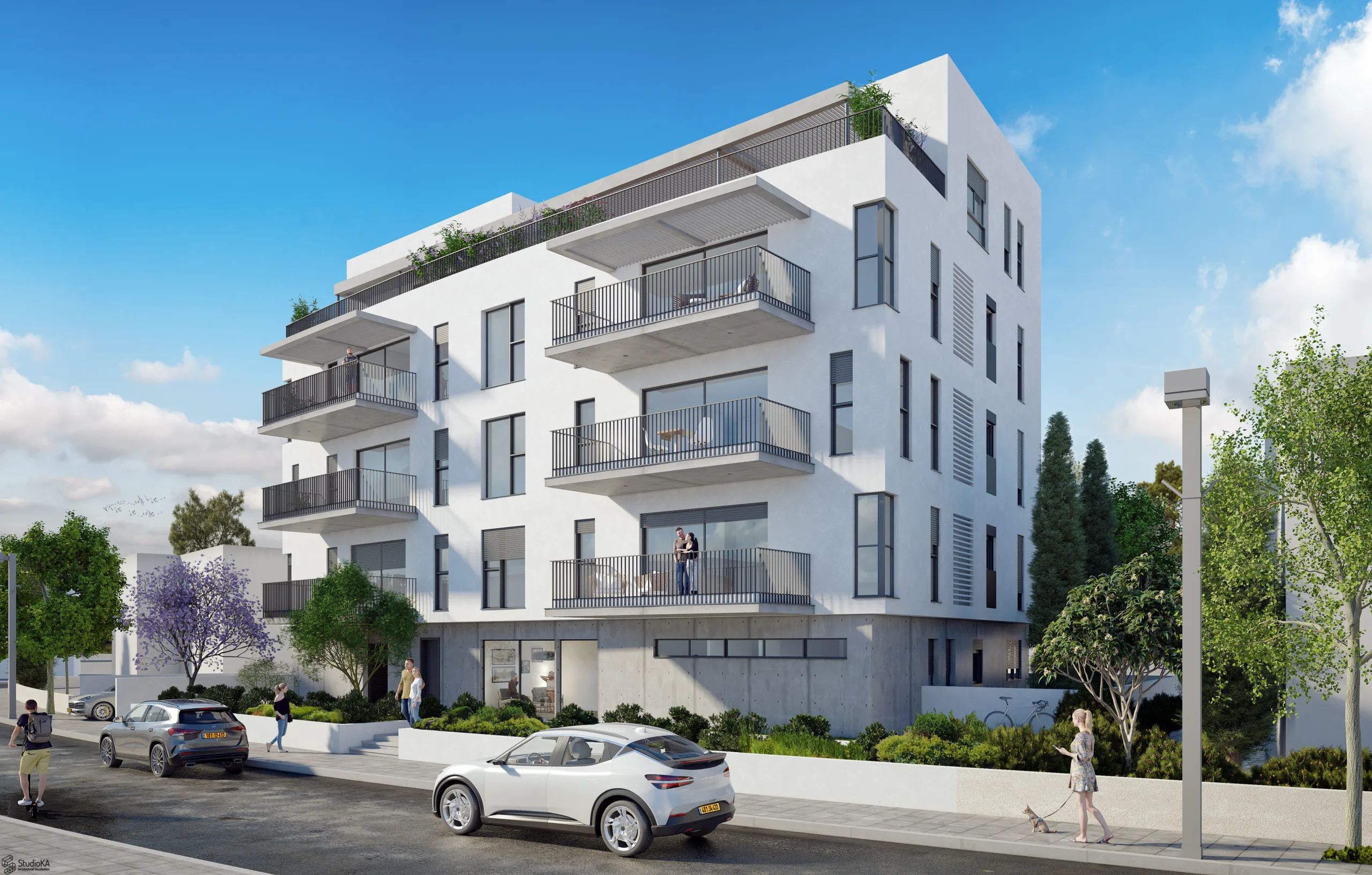 רביבים הצפון הירוק של ת״א מוקם בניין בוטיק ובו 13 דירות יוקרה . דירות גן , דירות ,3,4 5 חדרים . על היצירה והתכנון חתום משרד אדריכלים פישר-לבנטון